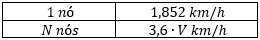 Dada uma velocidade V em m/s, esse número é equivalente a 3,6 · V km/h. Considerando uma quantidade N de nós que seja equivalente a 3,6 · V km/h, tem-se que N deve satisfazer a seguinte regra de três:
