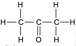 Dessa forma, observando-se que o ângulo de incidência é o mesmo para os cinco líquidos, concluímos que, para que o sen r seja máximo, o índice de refração do líquido nlíquido deve ser mínimo. Assim, o líquido que deve ser utilizado é a propanona, cuja fórmula estrutural está apresentada na figura a seguir.