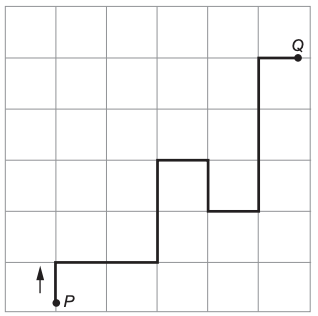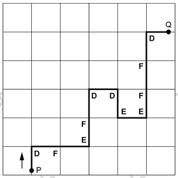 Seguindo do ponto P ao ponto Q, em cada cruzamento, as indicações são dadas por DFEFDDEEFFD.