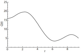 Temos, portanto, que o gráfico de Q é senoidal, o que pode ser observado apenas nas alternativas A e C. Além disso, como , podemos concluir que a alternativa correta é A.