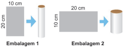 O comprimento da circunferência da base da embalagem 1 é dada por . Então, o raio da embalagem 1 é