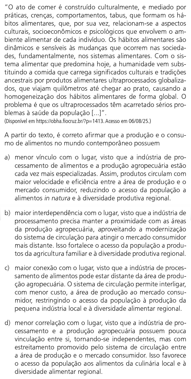 A indústria alimentícia contemporânea vem contribuindo para a mudança dos hábitos alimentares da sociedade, tendo em vista que impulsiona a especialização da agropecuária e aumenta a velocidade tanto no processo de produção dos itens alimentícios, quanto no transporte. O crescimento da indústria de alimentos ultraprocessados tem se refletido sobre a alimentação e os costumes habituais das populações em escala local, ao passo que padroniza os hábitos alimentares e, além disso, oferta dietas baseadas em alimentos com baixa função nutricional.