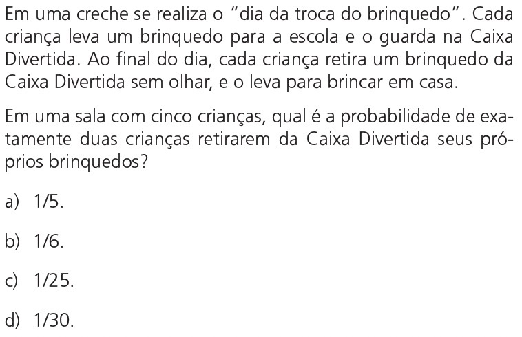 A probabilidade da quinta criança não retirar o seu brinquedo é dada por: ;