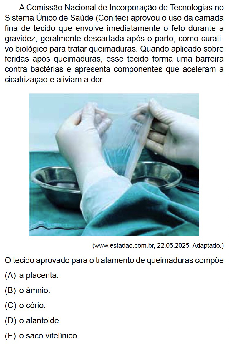 O âmnio é o anexo embrionário que reveste o feto e delimita a cavidade amniótica, preenchida pelo líquido amniótico. Portanto, esse é o anexo embrionário que envolve o embrião durante a gravidez e que geralmente seria descartado no parto.