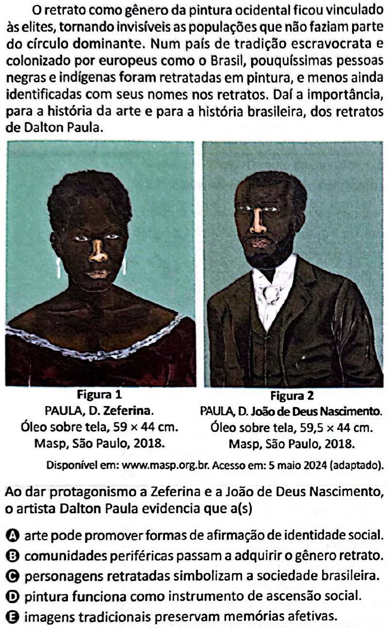 Considerando a relação direta entre o gênero retrato e as elites no Brasil, país em que tradicionalmente pessoas negras e indígenas não foram representadas em pinturas, as obras de Dalton Paula, protagonizadas por negros como Zeferina e João de Deus Nascimento, rompem com a tradição eurocêntrica, que invisibilizou esses indivíduos. Suas obras reparam simbolicamente essa ausência, resgatando memórias e afirmando identidades apagadas da história da arte brasileira. Assim, o artista evidencia que a arte pode promover formas de afirmação de identidade social, devolvendo protagonismo e humanidade a sujeitos historicamente marginalizados.
