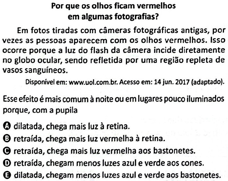 Em locais com pouca luminosidade, a pupila se dilata para permitir a entrada de mais luz, já que há menor oferta de iluminação e o cérebro necessita de mais dados visuais para garantir uma visão nítida.