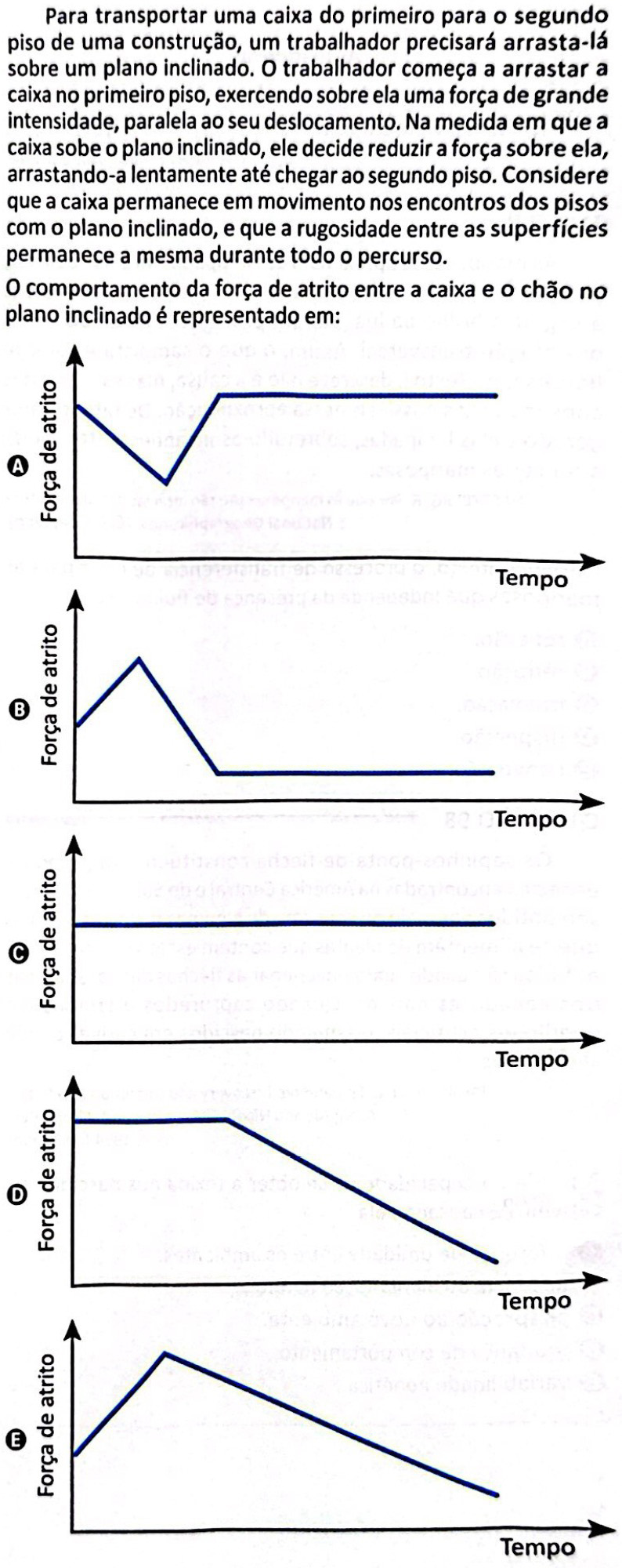 Como o coeficiente de atrito (μc), o peso aplicado no corpo e o ângulo θ são constantes, podemos concluir que o atrito também é constante e, assim, assinalamos a alternativa C.