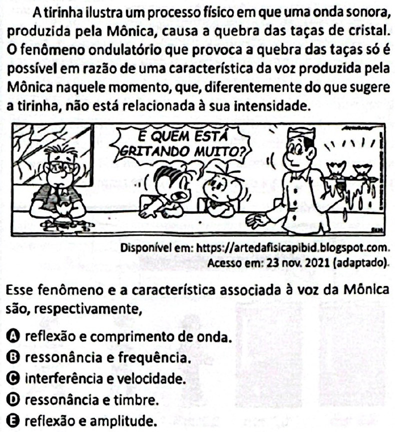 A quebra das taças está associada ao fenômeno de ressonância entre a fonte de ondas sonoras (Mônica) e as moléculas que compõem o material da taça.