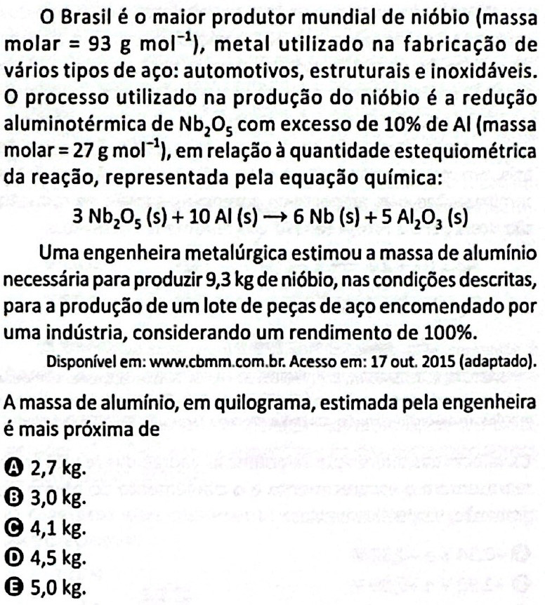 A massa a ser usada será de 4,5 kg + 0,45 kg = 4,95 kg