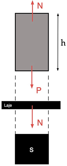 As forças aplicadas em um paralelepípedo de altura h podem assim ser representadas: