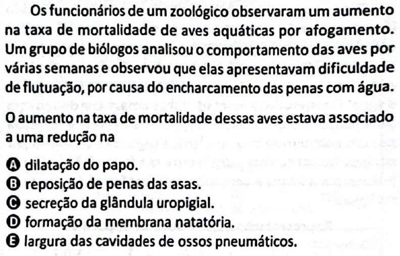 Com a redução da secreção da glândula uropigial, haverá menos lipídeos impregnados nas penas, tornando-as encharcadas e dificultando a flutuação. Desse modo, há aumento da mortalidade desses animais por afogamento.
