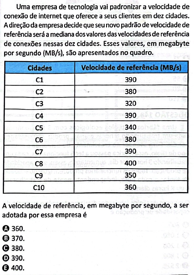 A mediana será a média aritmética entre o 5º e o 6º valores do rol, logo, a mediana é