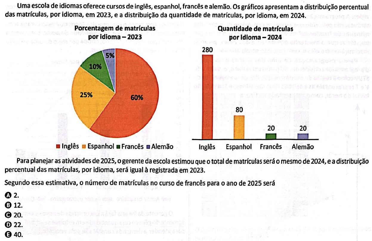 Seja “n” o número de matrículas no curso de francês em 2025: