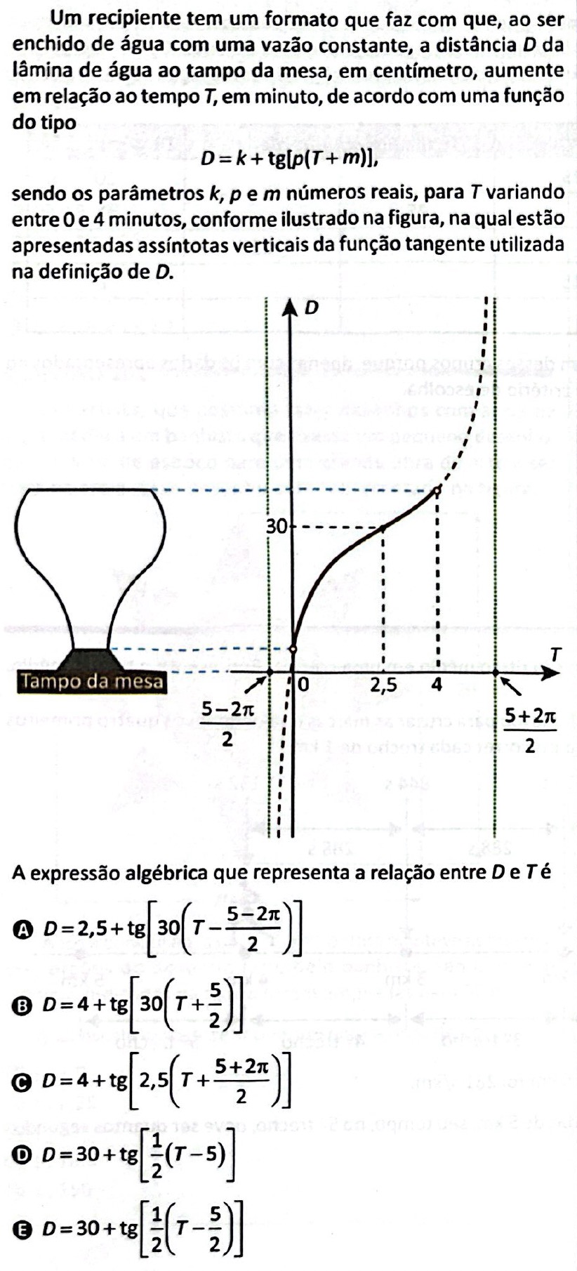 Logo, a expressão algébrica que representa a relação entre D e T é: