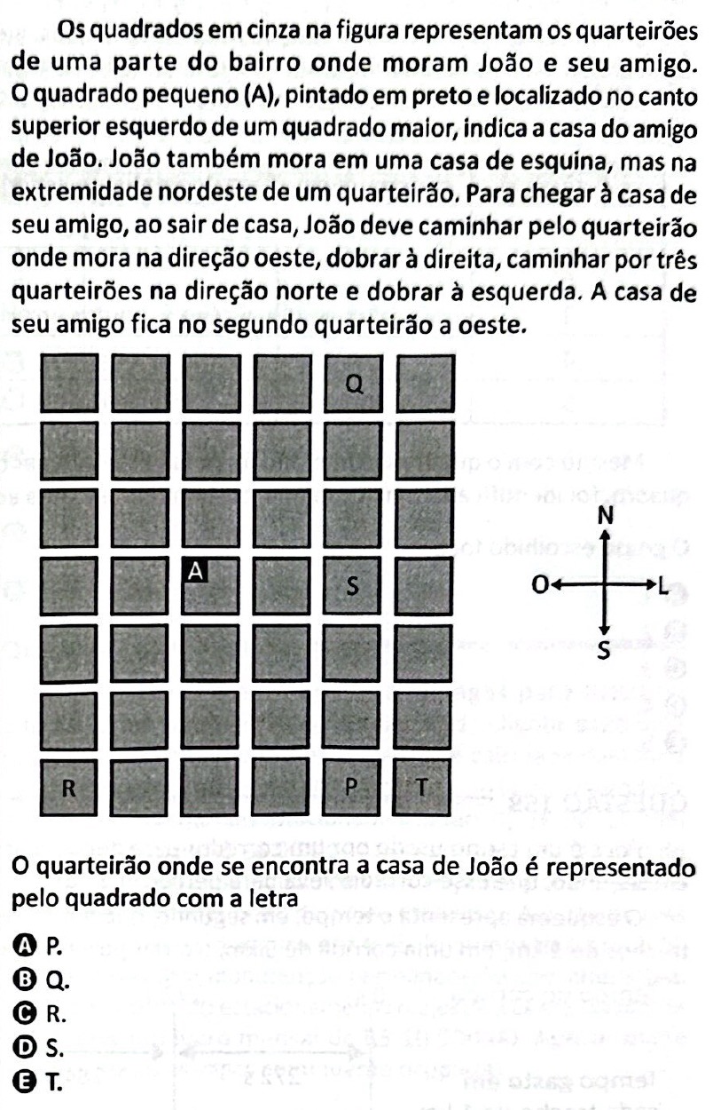 A única possibilidade que verifica esses comandos é quando a casa de João é representada pela letra P:
