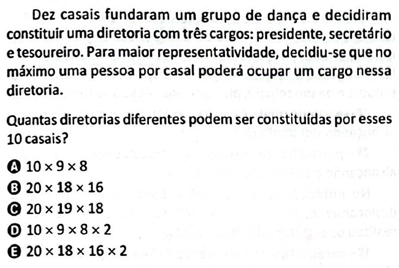 Assim, o total de diretorias que podem ser constituídas é igual a