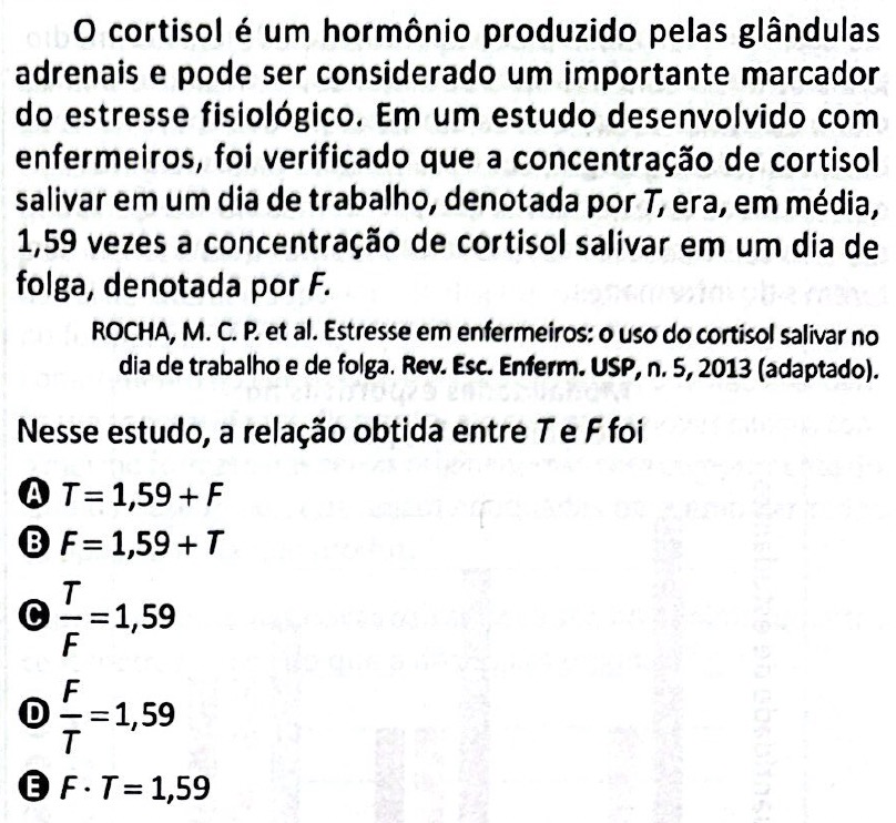 Do enunciado, temos que T = 1,59 ⋅ F, ou seja: