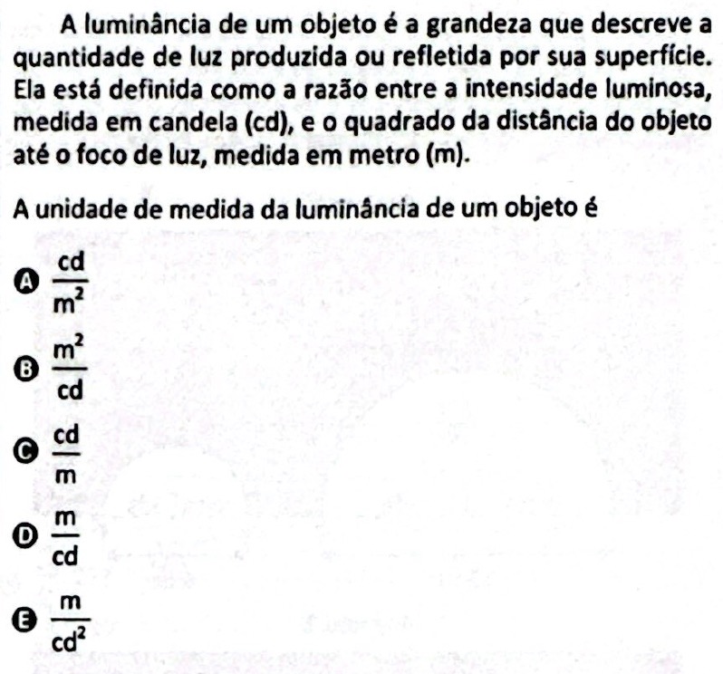 Portanto, a unidade de medida da luminância é