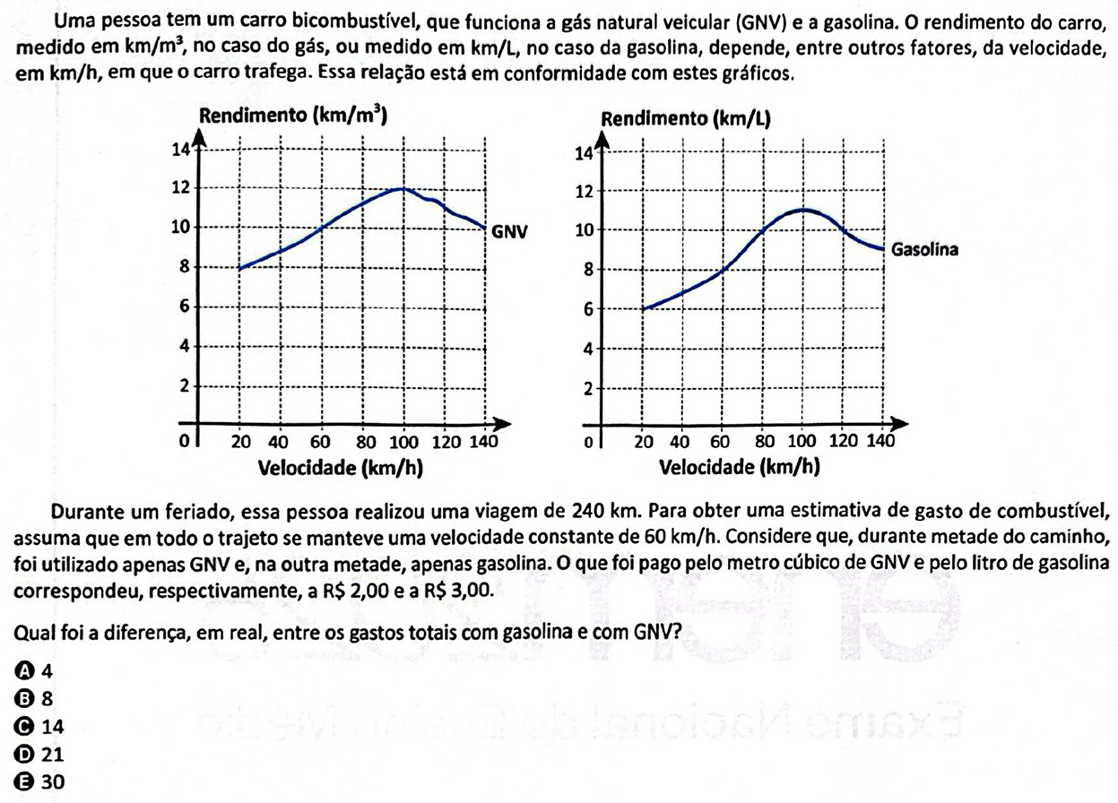 Dado que o carro se deslocará com velocidade constante de , temos, dos gráficos apresentados, que o rendimento do carro com GNV, em