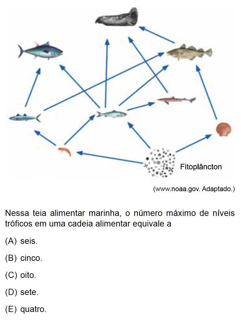 Um dos predadores de topo de cadeia alimentar ocupa os níveis tróficos de consumidor secundário, terciário e quaternário. Sendo assim, de produtor (fitoplâncton) a consumidor quaternário, há cinco níveis tróficos.