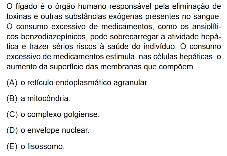 As células do fígado são ricas em retículo endoplasmático agranular, que é responsável pela desintoxicação, degradando, por exemplo, álcool e medicamentos, como os ansiolíticos. Devido ao consumo excessivo de medicamentos, as células hepáticas aumentam ainda mais a superfície das membranas que compõem esta organela.