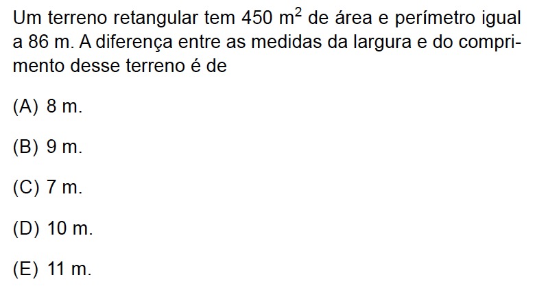 Sendo a e b as dimensões do terreno retangular, temos que: