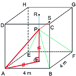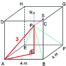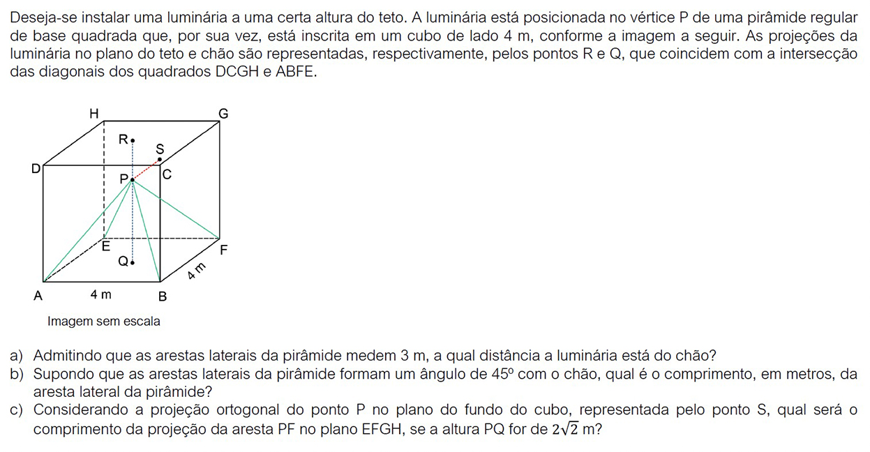 Assim, . Chamando de x a medida, em metros, da aresta lateral da pirâmide, então, pelo Teorema de Pitágoras: