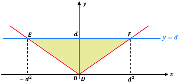 O gráfico de f, bem como a reta y = d, estão representados visualmente a seguir: