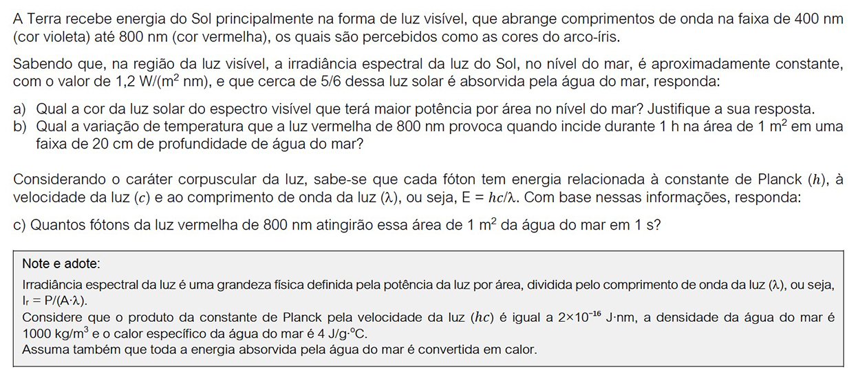 c) A potência que atinge a superfície da água é 960 W. Assim, a energia que atinge essa superfície é dada por: