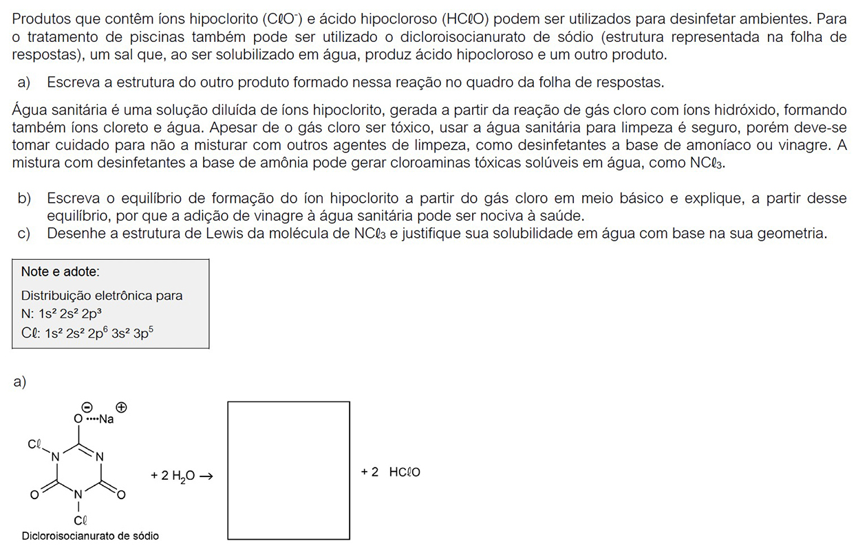 b) De acordo com o texto, a equação de equilíbrio de formação do íon hipoclorito é:
