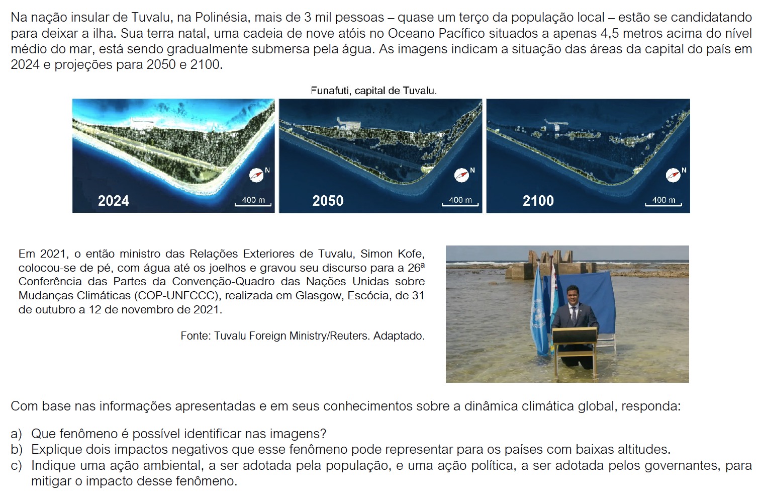 a) O fenômeno que é possível identificar nas imagens é o aumento do nível do mar, que é provocado pela intensificação das mudanças climáticas.