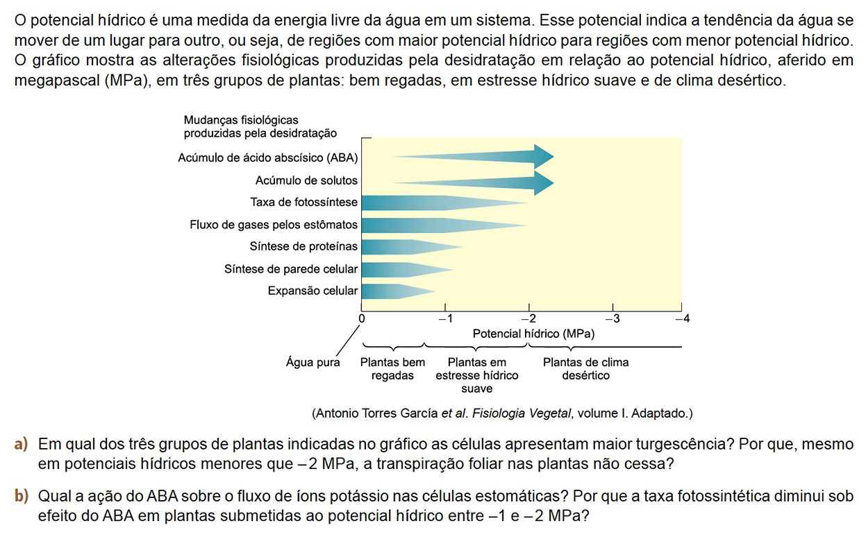 a) As células apresentaram maior turgescência no grupo das plantas bem regadas. Mesmo com potenciais hídricos menores que -2 MPa, a transpiração cuticular nas folhas ainda continuará acontecendo.