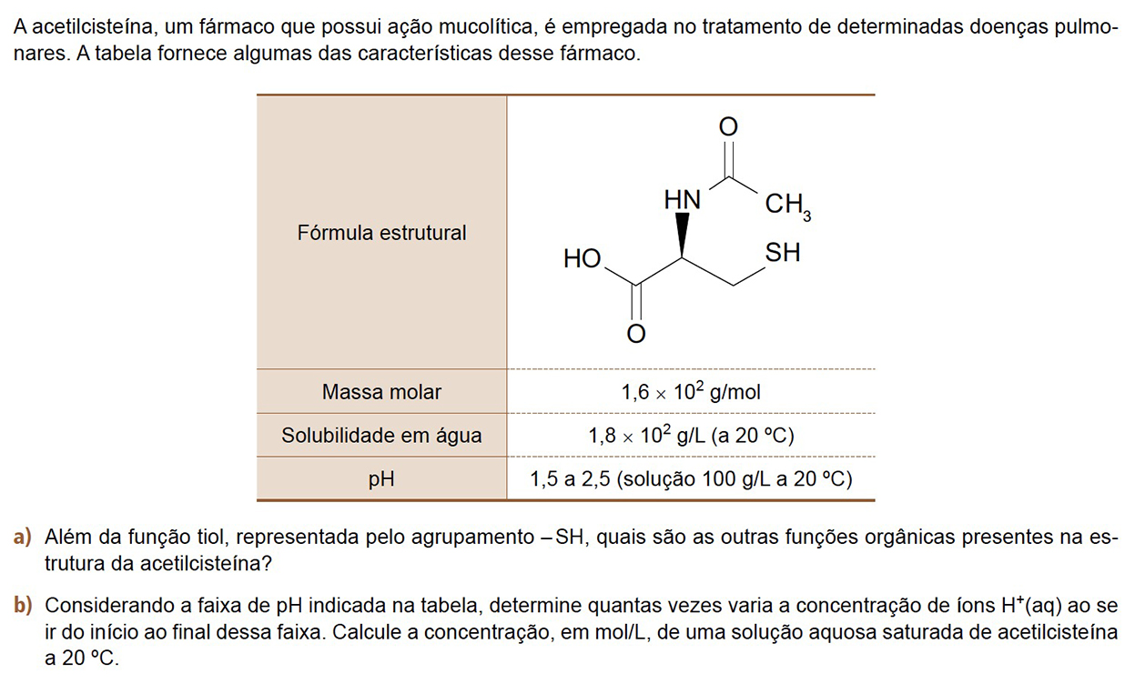 a) Além da função tiol indicada, o composto apresenta as funções orgânicas ácido carboxílico e amida.