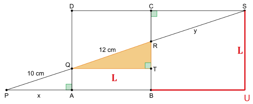 Note que os triângulos PSU e QRT são semelhantes, de modo que: