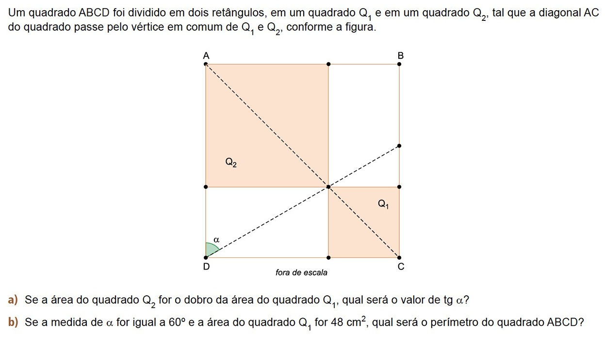 a) Do enunciado temos que a área de Q2 é o dobro da área de Q1, ou seja, .