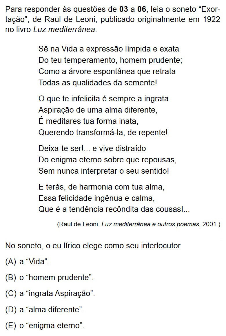 No poema, o eu lírico usa a segunda pessoa para se dirigir ao “homem prudente”, que aparece na posição de vocativo no segundo verso, evidenciando que ele é o interlocutor do texto.