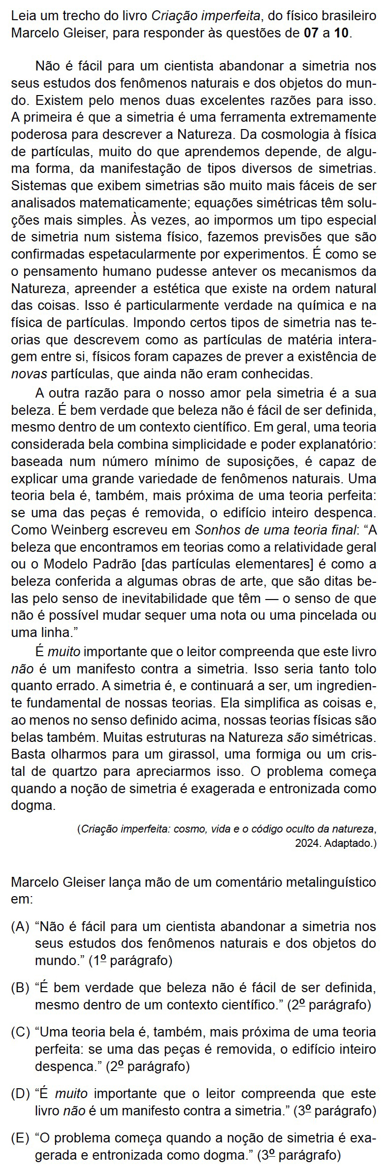 Ao fazer referência explícita ao processo interpretativo do leitor (“É muito importante que o leitor compreenda’’) e ao livro que está sendo escrito (“este livro”), o enunciador chama atenção para sua própria obra, num processo metalinguístico.
