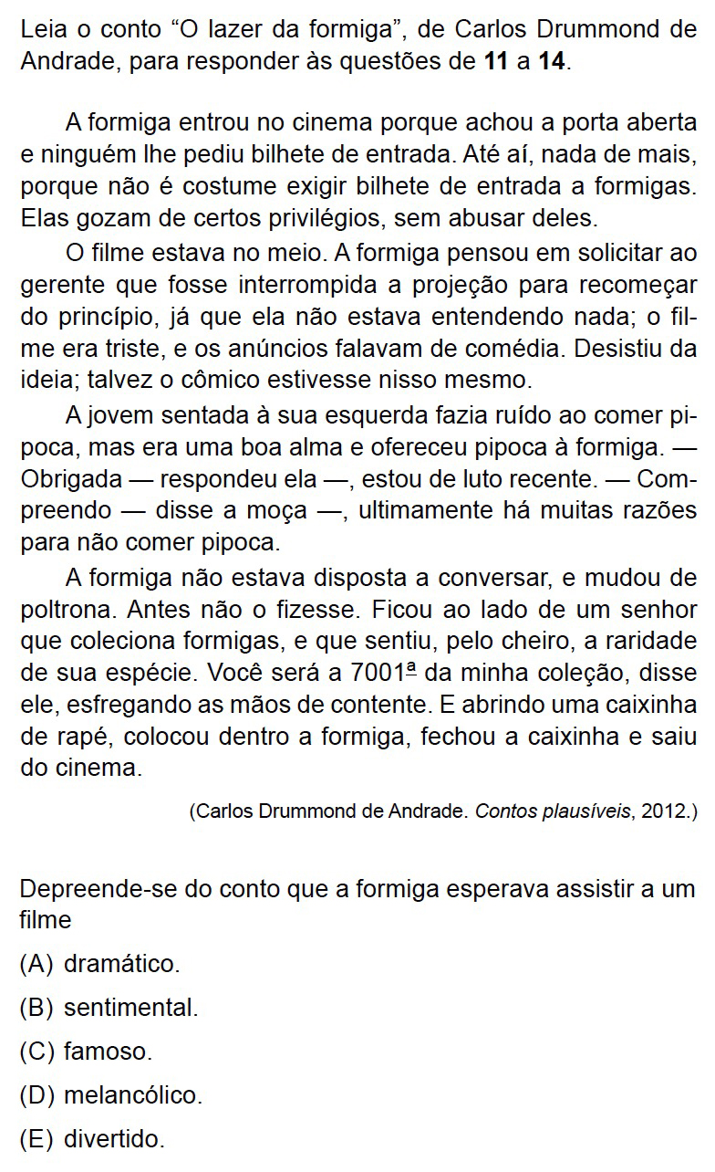 A insatisfação da formiga com o filme nasce de uma quebra de expectativa: ela esperava assistir a um filme divertido, pois “os anúncios falavam de comédia”, mas “o filme era triste”.