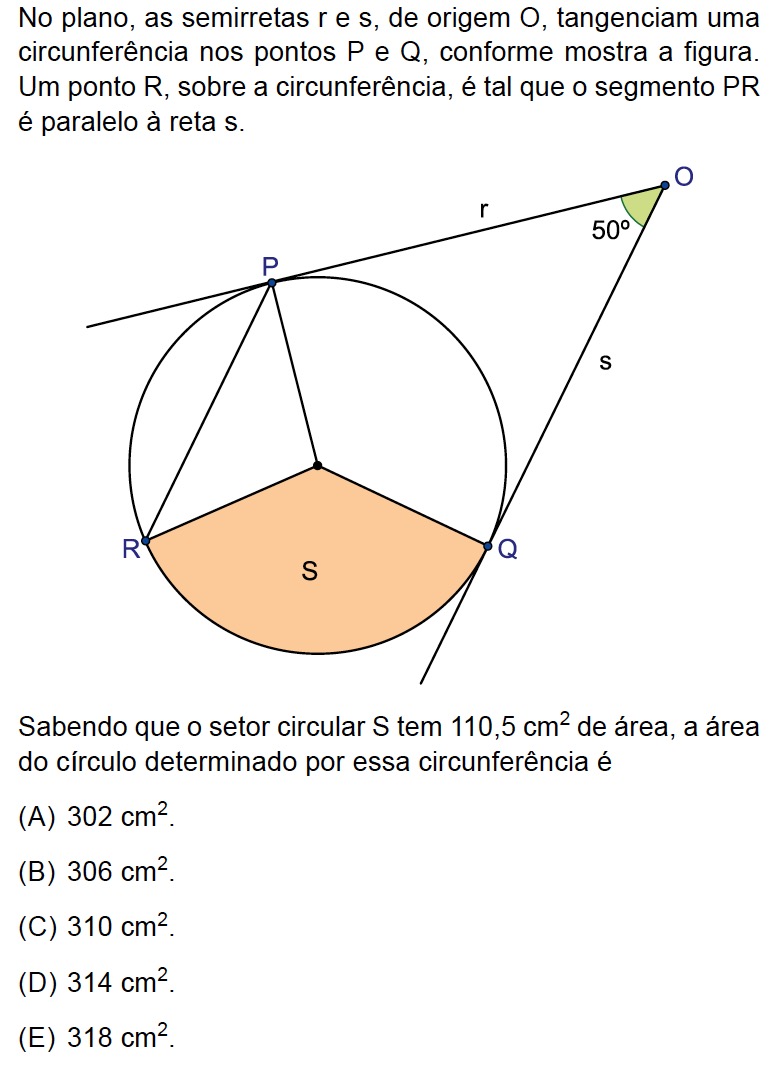 Portanto, o ângulo central do setor destacado tem medida igual a 360º - 130º - 100º = 130º. Logo: