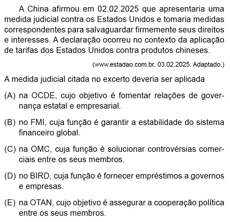 A OMC, Organização Mundial do Comércio, é uma instituição internacional que ajuda a regular e a organizar o comércio entre os países participantes, criando um ambiente propício para garantir e fortalecer, de forma pacífica e mais vantajoso possível entre as partes, as trocas e os acordos comerciais.