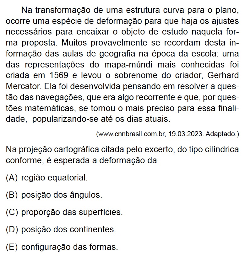 A projeção de Mercator é do tipo cilíndrica conforme e busca ser o mais fiel possível aos ângulos e às formas do continente, mas distorce o tamanho das áreas, principalmente nas zonas mais próximas aos polos que passam a apresentar visualmente um tamanho muito maior do que a realidade, enquanto as regiões próximas à Linha do Equador, apresentam visualmente áreas menores do que a realidade. Esse tipo de projeção, pensada para a navegação, deforma a proporção do tamanho das superfícies terrestres.