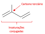 O composto formado por cinco carbonos, duas insaturações conjugadas (insaturações intercaladas por uma ligação simples) e um carbono terciário é: