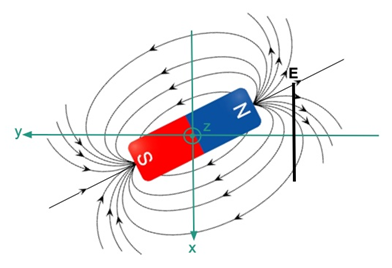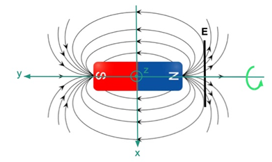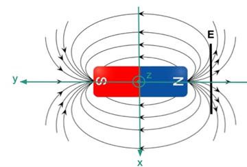 Entretanto, o mesmo fenômeno não ocorre caso a rotação do ímã seja em relação ao eixo y, pois suas linhas apresentam simetria em relação ao seu eixo longitudinal, que coincide com o eixo y.