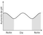 Durante a noite, a planta realiza apenas a respiração celular. Com isso, ocorre o aumento da concentração de CO2 dissolvido na água, deixando o meio mais ácido e provocando diminuição do pH.