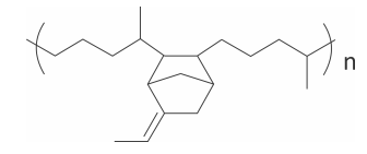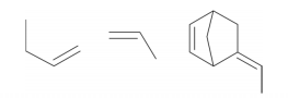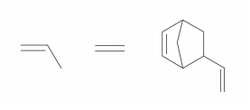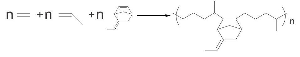 Os monômeros que podem ser utilizados para preparar o co‐polímero do tipo EPDM, cuja fórmula estrutural foi apresentada, são