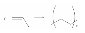 Polímeros podem ser produzidos pela polimerização de compostos insaturados (monômeros) como exemplificado para o polipropileno (um homopolímero):
