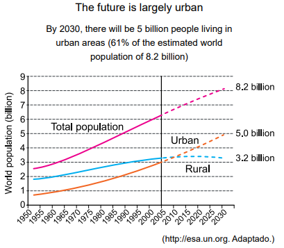 O gráfico mostra que o período aproximado de tempo em que a estimativa de populações urbana e rural era igual