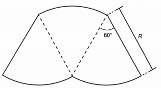 O proprietário de um parque aquático deseja construir uma piscina em suas dependências. A figura representa a vista superior dessa piscina, que é formada por três setores circulares idênticos, com ângulo central igual a 60°. O raio R deve ser um número natural.
