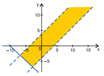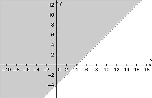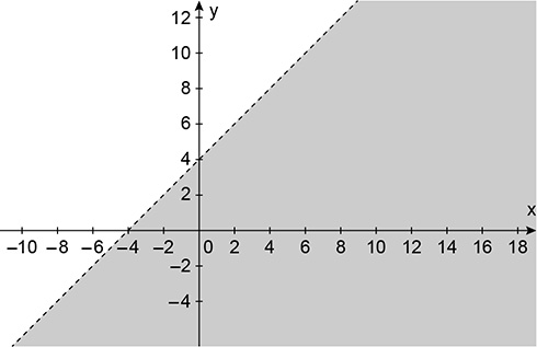Da segunda desigualdade, temos y > x - 4, cujas soluções estão representadas a seguir: