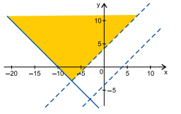 Da terceira desigualdade, temos y < x + 4, cujas soluções estão representadas a seguir: